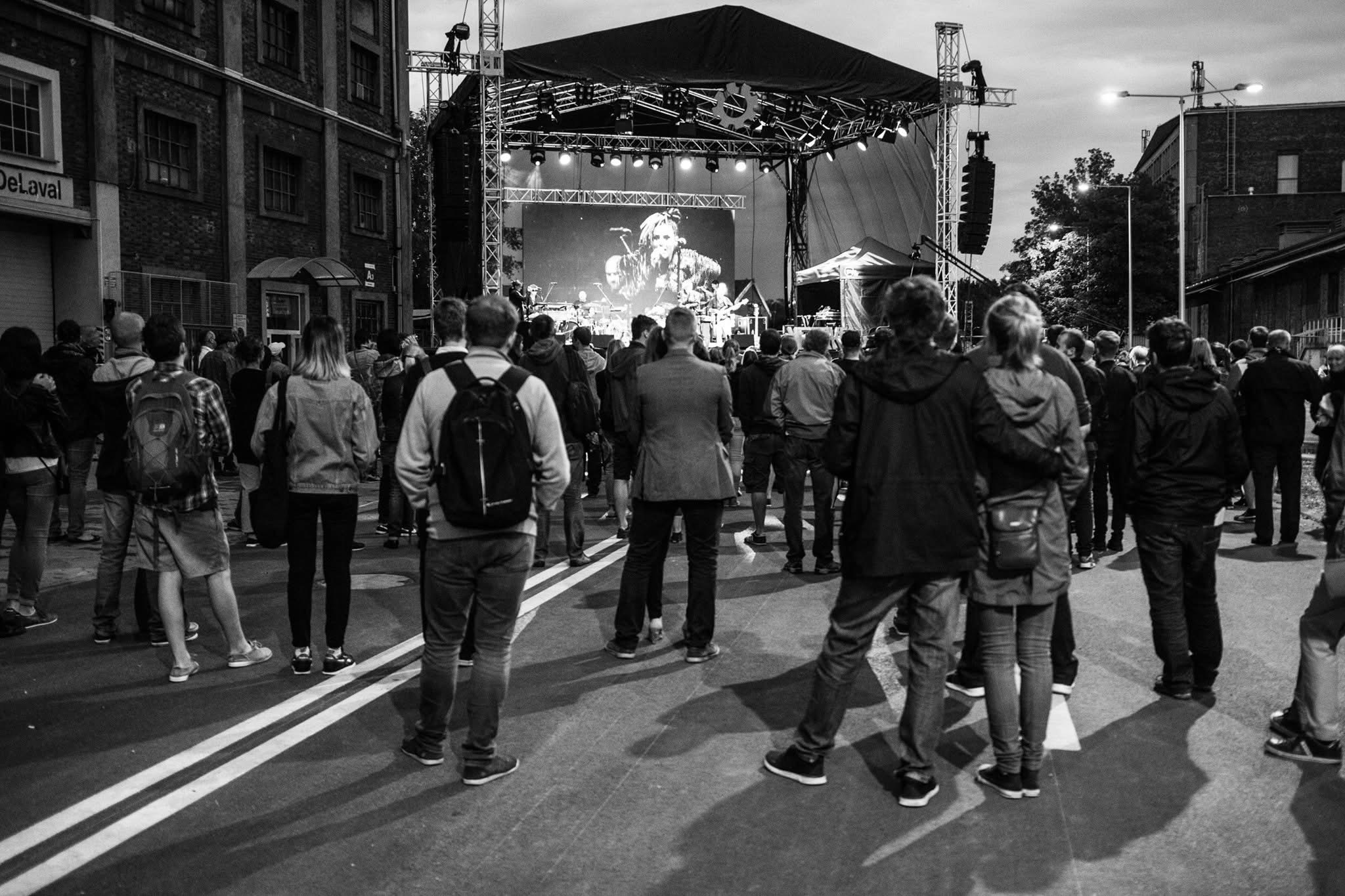 Held at the former Wroclaw feature film production main hall, the concert featured extraordinary line-up with three drummers (Josh Dion, Samuel Rohrer, Oivind Hegg-Lunde) three bass players (Yonathan Levi, Geoff Krally, Bond) guitarist Eivind Aarset, fronted by leading trumpet players, Nils Petter Molvaer and Sebastian Studnitzky.