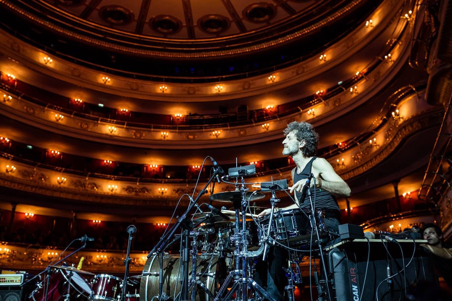 Turned over stage providing amazing balcony perspective of the Wroclaw Opera House. On drums Swiss wizard Jojo Mayer, Alfred Vogel on a filling self-arranged kit, two double bass players John Davis and Pawel Pastuszka, Dj Dieb 13, Ståle Storløkken on keys, Bond on bass and brass section led by saxophonist Adam Bławicki.